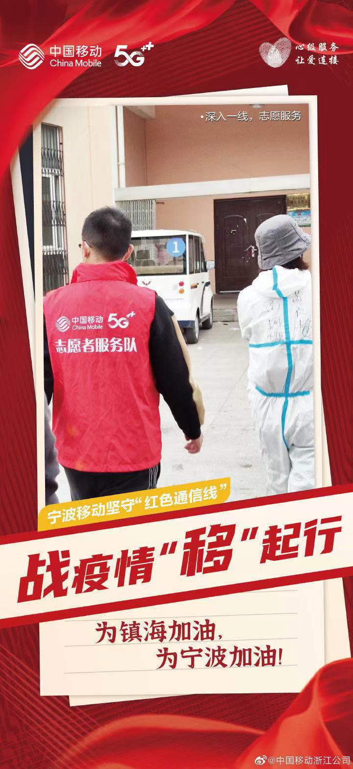 浙江移动宁波分公司不遗余力坚守“疫”线,以专业的技术、优质的服务、温暖的产品,全力以赴做好疫情防控通信保障和服务支撑,拼出疫情防控“宁波速度”![[加油]](https://h5.sinaimg.cn/m/emoticon/icon/default/d_jiayou-a34ced0409.png)